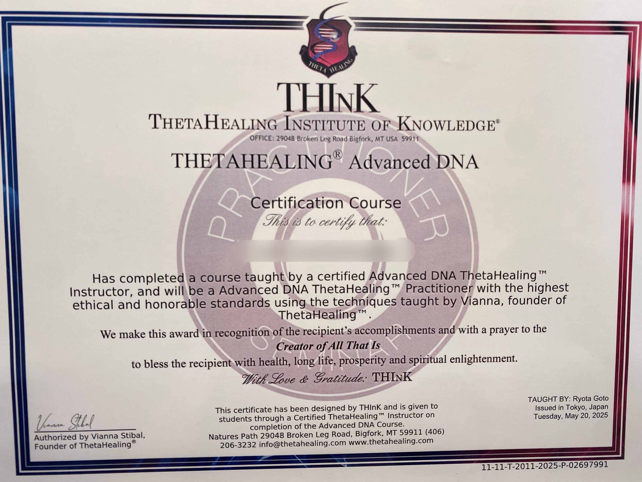 シータヒーリングでは、こうした深層にアクセスし、DNAレベルに記憶されたエネルギーや信念を読み解き、必要に応じて書き換えと再統合を行うことができます。